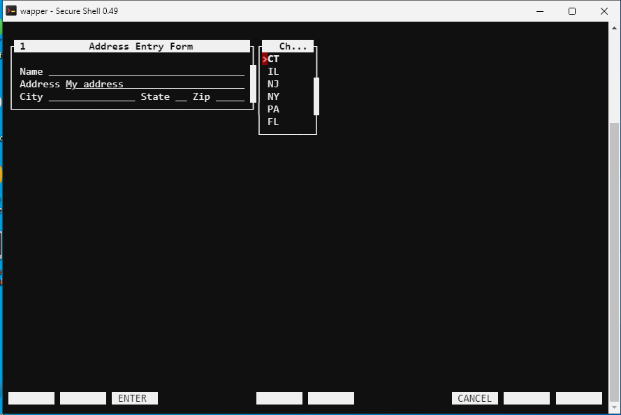 Cursel provides a language similar to the AT&T FMLI shell (Form and Menu Language Interpreter).