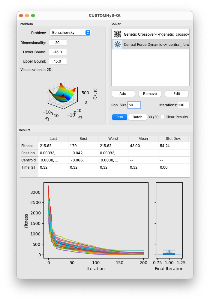 This is the official repository for the CUSTOMHyS-Qt software. CUSTOMHyS-Qt is a GUI for the CUSTOMHyS framework, which is an interactive tool for customysing heuristic-based algorithms. The CUSTOMHyS-Qt is written in Python and uses the PyQt5 library for the GUI. Further references about the backend can be found in the CUSTOMHyS repository.