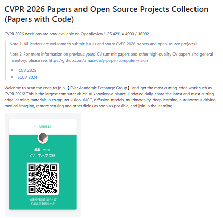 - Continuously updated list of CVPR 2026 papers with corresponding code implementations