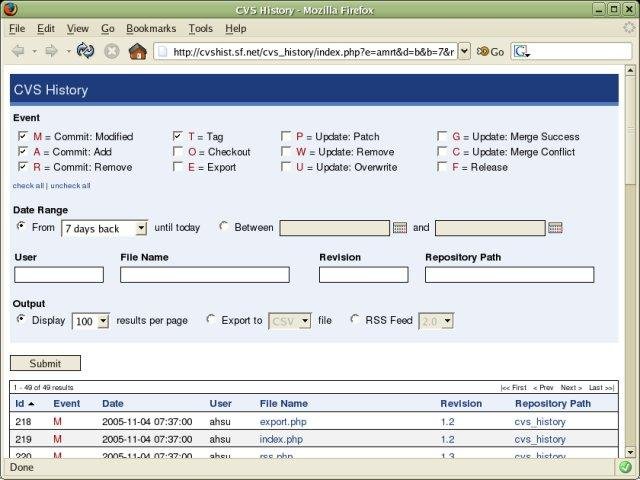 A web application for searching the history of CVS actions.