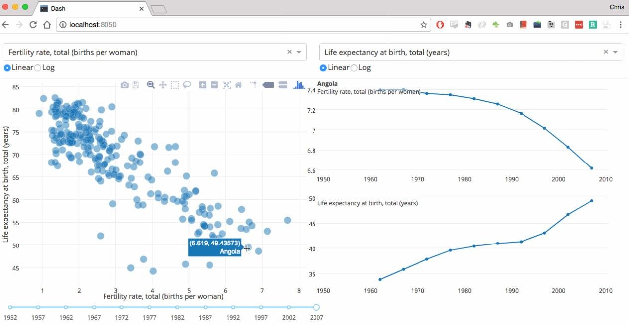 Dash apps are very lightweight, requiring only a limited number of lines of Python or R code; and every aesthetic element can be customized and rendered in the web. It’s also not just for dashboards. You have full control over the look and feel of your apps, so you can style them to look any way you want.