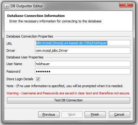 Insalling the plugin it is possible to direct data collected by data gatherers into a MySQL database. The database connection is configured via a wizzard. The whole process is similar to putting data to a file.