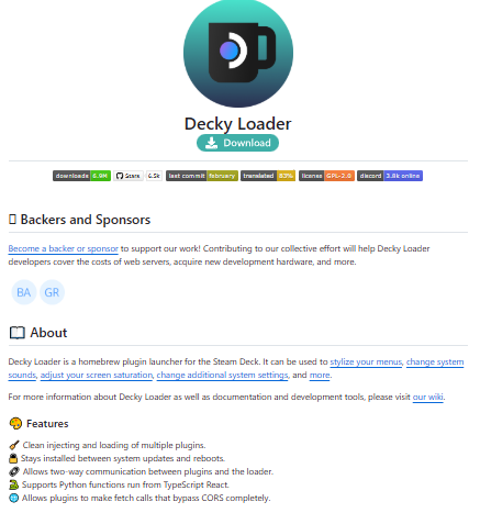 Decky Loader is a homebrew plugin launcher built for the Steam Deck that enables users to extend and customize the console’s functionality through a dynamic plugin ecosystem integrated directly into the SteamOS interface. It acts as a middleware layer that injects and manages plugins, allowing deep customization such as modifying UI elements, changing system sounds, adjusting display properties, and extending system behavior beyond stock capabilities. The platform is designed to persist across system updates and reboots, ensuring continuity of installed plugins without manual reconfiguration. It supports advanced developer features such as two-way communication between plugins and the loader, as well as interoperability between Python backends and TypeScript React frontends. Decky Loader also allows plugins to bypass typical browser restrictions like CORS, enabling more powerful integrations with external data sources.