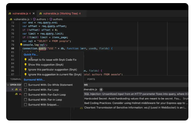 DeepCode AI has always been the backbone of Snyk code, which is why it's the fastest, most accurate SAST on the market. DeepCode AI, powering the Snyk platform, utilizes multiple AI models, is trained on security-specific data, and is all curated by top security researchers to give you all the power of AI without any of the drawbacks. With 11 supported languages, and multiple AI models, Snyk's DeepCode AI was designed to find and fix vulnerabilities and manage tech debt. DeepCode AI powers Snyk's one-click security fixes and comprehensive app coverage, letting developers build fast while staying secure. Our specialized DeepCode AI is built and refined by top-tier researchers that use training data from millions of open source projects, never customer data. DeepCode AI's hybrid approach uses multiple models and security-specific training sets for one purpose, to secure applications.