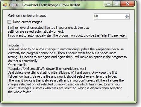 I made this little program in a few hours to make wallpapers of the /r/ImagesOfEarth subreddit automatically downloading.