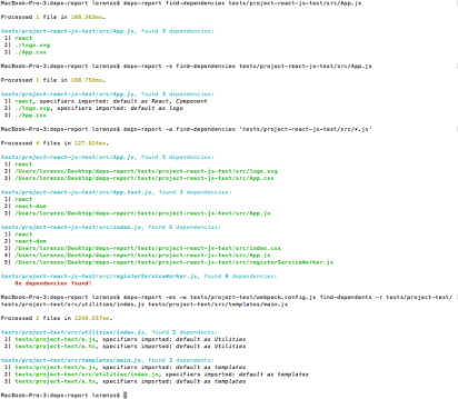 Generate reports about dependencies and dependents of your JavaScript/TypeScript files through an AST. It supports import and require statements. You can search also images and css files imported in your javascript files (such as in a React project).