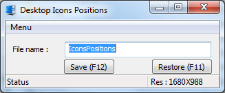 Save and restore the positions of desktop icons. When you change the resolution of your Windows computer, you have the risk to lose the positions of the icon on the desktop. this little tool allow you to save and restore your icons.