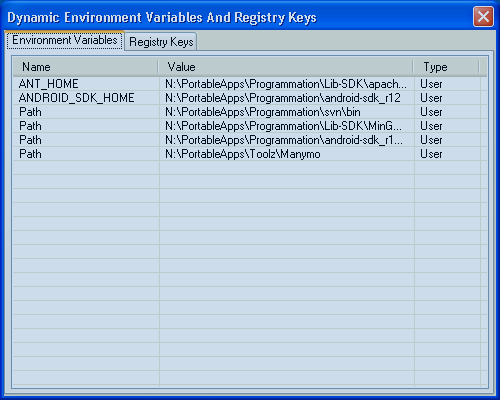 This software can be used to share the environment variables and the registry keys between computers using portable device (for sharing SDK, compiler...).