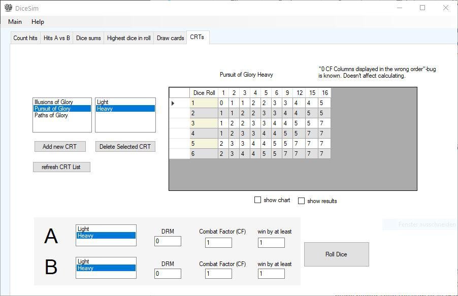 -Added CRTs for one-dice CRTs (includes Paths of Glory, Illusions of Glory, Pursuit of Glory CRTS. You can add your own.)