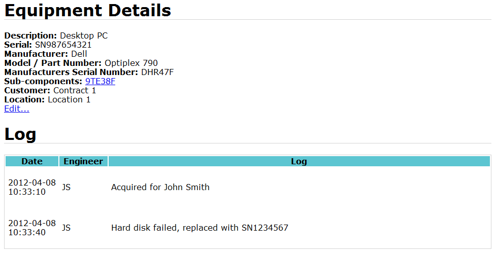 The business problem was that a system was required to track all items of equipment supplied to a customers site as well as any internal equipment which had been returned. This tracking also had to include a log history of where it had been and any work which had been done to it.