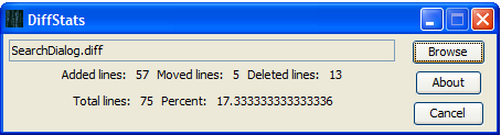 DiffStats analyzes diff files. It counts lines of code added, deleted and moved. It was designed for Java code, but will work with other languages, like C++. It ignores blank lines and comment line, if they start with a //, /* or *.