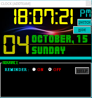 a desktop gadget, shows the time as well as a reminder.