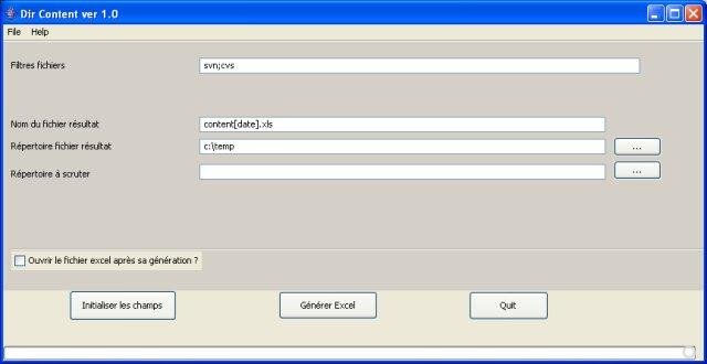 DirContent is a swing/ java based software that helps people check the content of their deliveries. DirContent puts the content of directory into an Excel document so as to be easy to check the content.