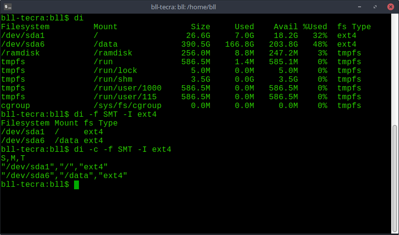 'di' is a disk information utility, displaying everything (and more) that your 'df' command does.