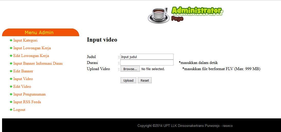 dilengkapi dengan: video, newsticker, banner, informasi, jam, hari dan tanggal, background yang bisa anda ubah