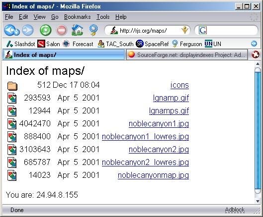 A perl solution to display a nice directory listing if indexes are turned off on a *NIX based server. Nominally named index.cgi, it reads via 'ls -l' and parses the output as needed for display, using the default Apache icons, or others, if specified.