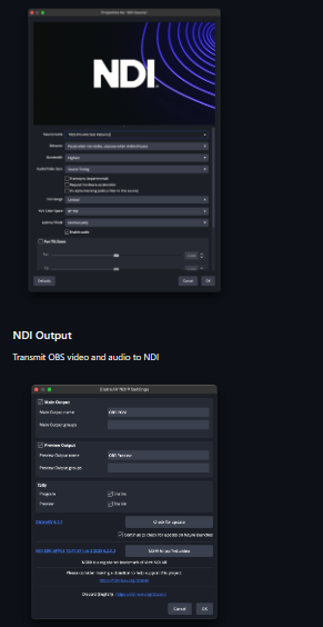 - Adds NDI input and output to OBS Studio