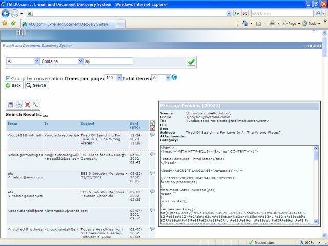 AJAX,document discovery search system for legal discovery,email search & other types of docs i.e. MSWord,Excel, TIFF, etc. Uses SQL Server FTS - full text search, to index emails & attachments. Documents are stored in SQL Server Written in C# ASP.NET