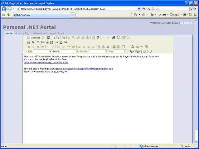 A .NET-based Web Portal for personal use. The purpose is to build a Homepage easily and without the need of a SQL Server. Pages are build through Tabs and Modules.