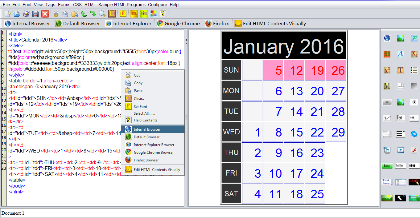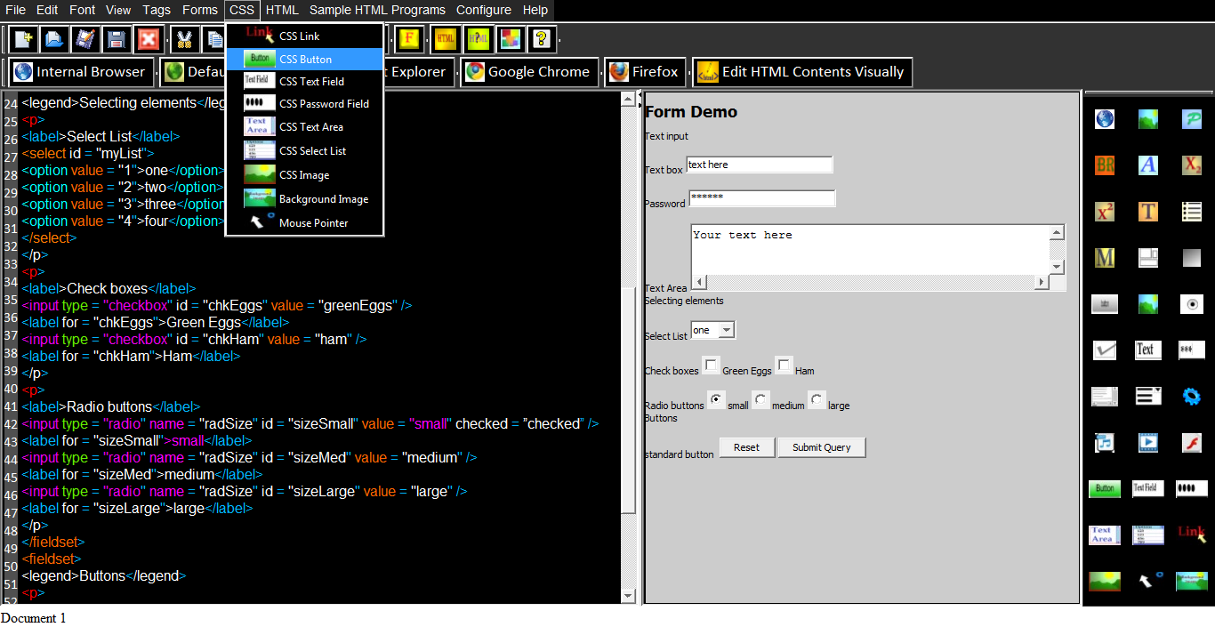This software enable you to create simple and also complicated webpages using html programming.In this software you can type your html program on the left side and can view the output on the right side.this software also enable you to insert advanced CSS tags and all html tags.you can change your information without modifying your previous html code.you can insert advanced CSS function like Buttons,Text Areas etc. only just filling simple information about it.this software is written in java programming language.this software is very easy to use.download it and try it.