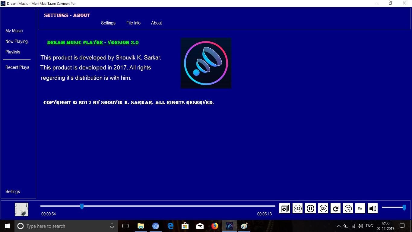 Dream Music Player is a very good application for playing audio files on a desktop with support to a wide variety of audio formats. It has full functionality with playlist, shuffle, open folder, repeat and so on. One can also load his music library with just a click. And most of all its interface is pleasing. Looking for new apps can give it a try. Current version is 3.0 and is the last version of this software.