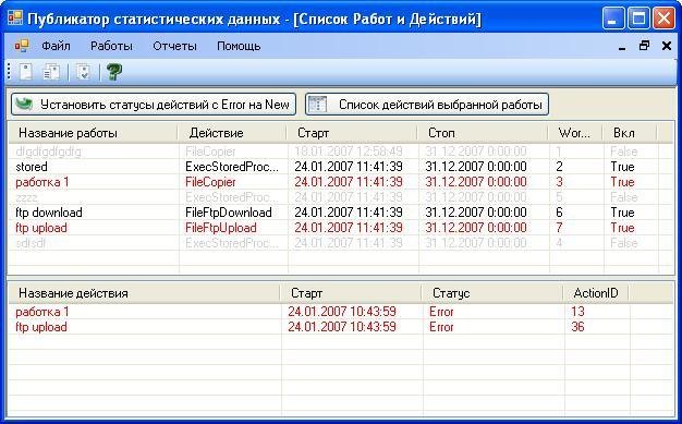 The project is intended for automatic start of Works and tracking of their states. The list of works: copying of files (locally, on a network, ftp), start stored procedures in MS SQL DataBase.