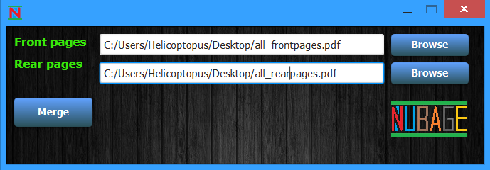 3. Start the "DuplexMerger". Add the path to the frontsided PDF into the first textfield, the path to the backsided PDF into the second textfield (you can also use the "browse" function).