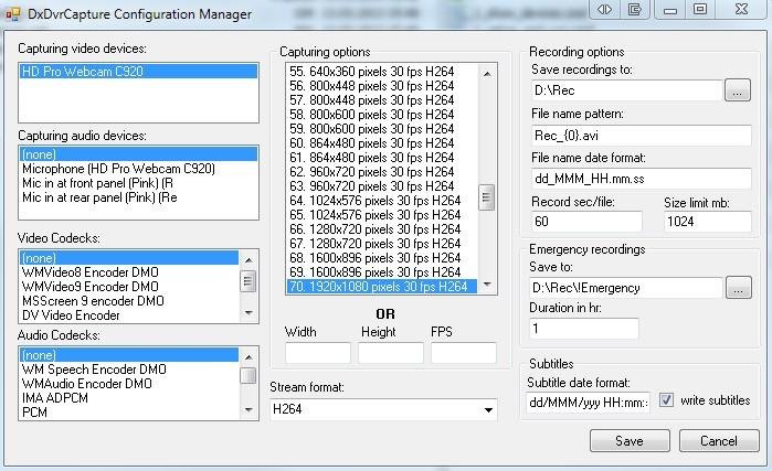 N.B.: For recording stream from camera in H.264 must be used drivers provided by Windows OS.
