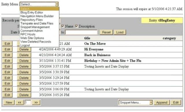 A CMS, or maybe a KMP (knowledge management platform.) DynaPlateBlog does web site content management and blogging with Atom, XMLRPC, snippets, a file repository, customizable templates, collaborative blog projects, a simple CGI installation process