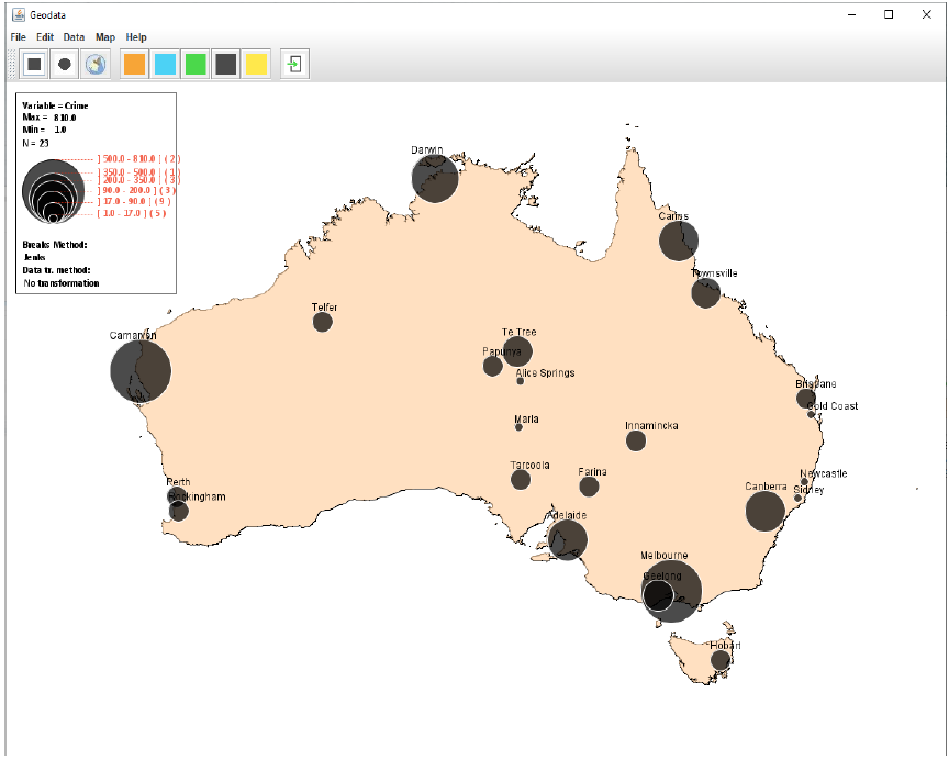 EasyGeo is an open source cartography program that generates maps using explicit equations in the choice of parameters. The input data is point data (not lines or areas) using csv files with object names (cities), variables (e.g. birth rate) and x and y coordinates. It is also possible to import maps in GeoJSON format. Possible output maps are: proportional circles, colour classes and interaction potential functions (Gravity models). Test data (10 countries and associated data) is provided with the program and located in the installation directory