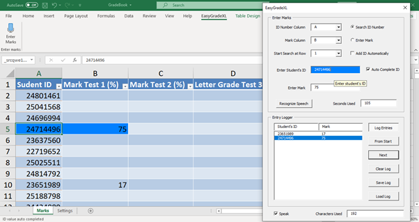 The application keeps a log of the grades, in the order that they are entered and provides a readback function to easily check if the grades were entered correctly.