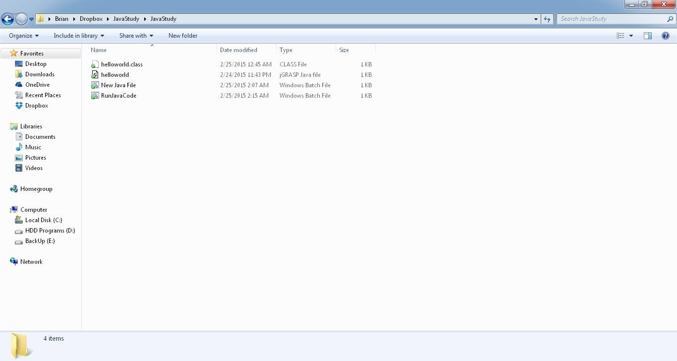 Anytime you want to make simple programs to test code or whatever, use these batch files I made. They are much quicker than opening up an IDE and typing in all the stuff to test something out. The batchfile "RunJavaCode" then creates a .class file (bytecode) and then runs the program. Very easy.