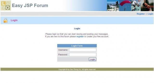 Easy JSP Forum is a community forum developed with JSP technology of all features of a standard web-based forum. It is easy to deploy on any web container such as Tomcat and can be integrated with any SQL database system. Developed by Dac-Thong Vu.