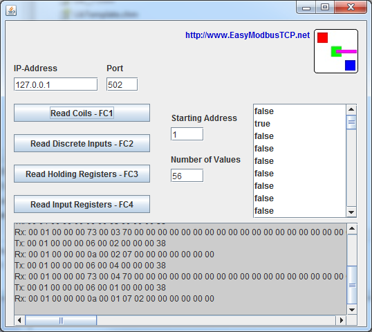 Suitable for data exchange between JAVA-Applications and PLCs like Schneider-electric; Siemens S7; Wago; Bosch-Rexroth; CoDeSys Devices and many more.
