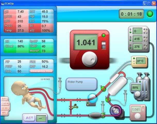 ECMOjo is a simulator and trainer for extracorporeal membrane oxygenation (ECMO). ECMOjo consists of a graphical user interface to allow interaction and train ECMO practitioners.