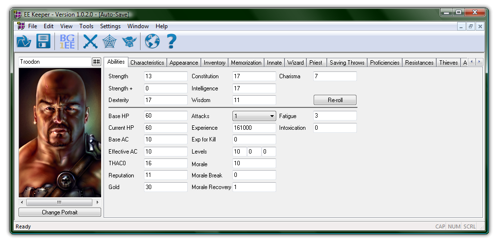 EE Keeper is saved game editor for Baldur's Gate: Enhanced Edition and Baldur's Gate II: Enhanced Edition. This project is a continuation of Shadow Keeper, originally released by Aaron O'Neil in 2000 for Baldur's Gate II: Shadows of Amn and Throne of Bhaal. This version will still work with the original BG2.