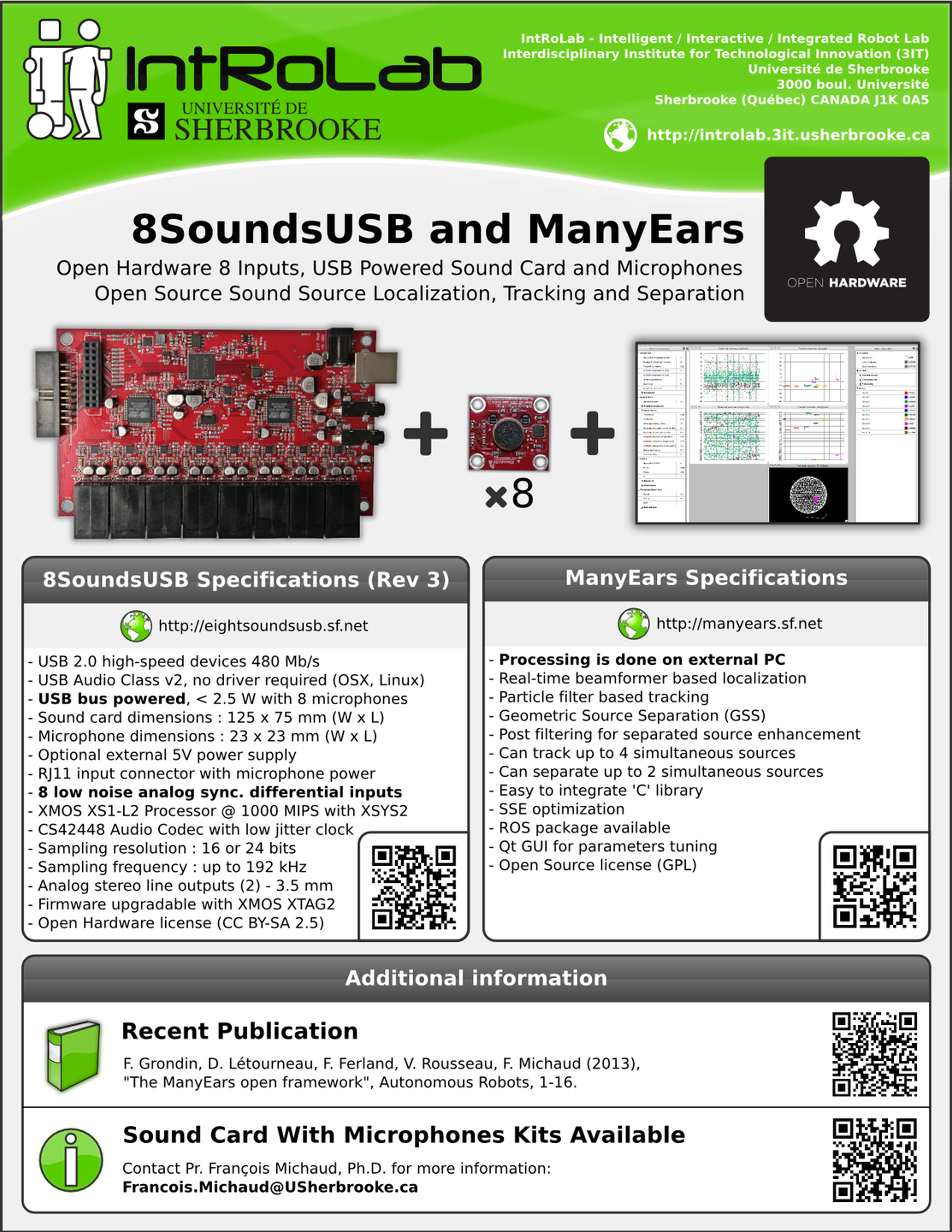 XMOS based, USB2 audio card, low power consumption, small form factor, 8 synchronous input channels and 4 stereo output channels.