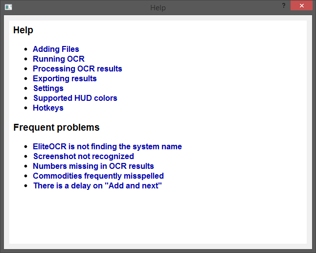 Excellent program for exporting commodities data for Elite Dangerous. So far, for me, it takes about 2-3 minutes per station to screen cap all of the commodities data, OCR it, export it to Slopey's BPC, and update my commodities database. Accurately reads almost all information on the screen and converts it to text. The only thing it can't do (and this is a design flaw in the game, not the OCR program) is pick up the trailing number for commodities when the amount available in the station exceeds the space available on screen to display it. (IE: amount available exceeds 8 digits?) As good as this is, it does require some manual intervention to keep data accurate. One example is noted above. Always, always, before you export data and import it elsewhere (such as BPC) proof your work and make sure it's accurate. Note: To the guy complaining about 'arbitrary' screen resolutions, this was a feature implemented at the request of the author of the BPC program, specifically because the resolution you're using creates too many data errors.