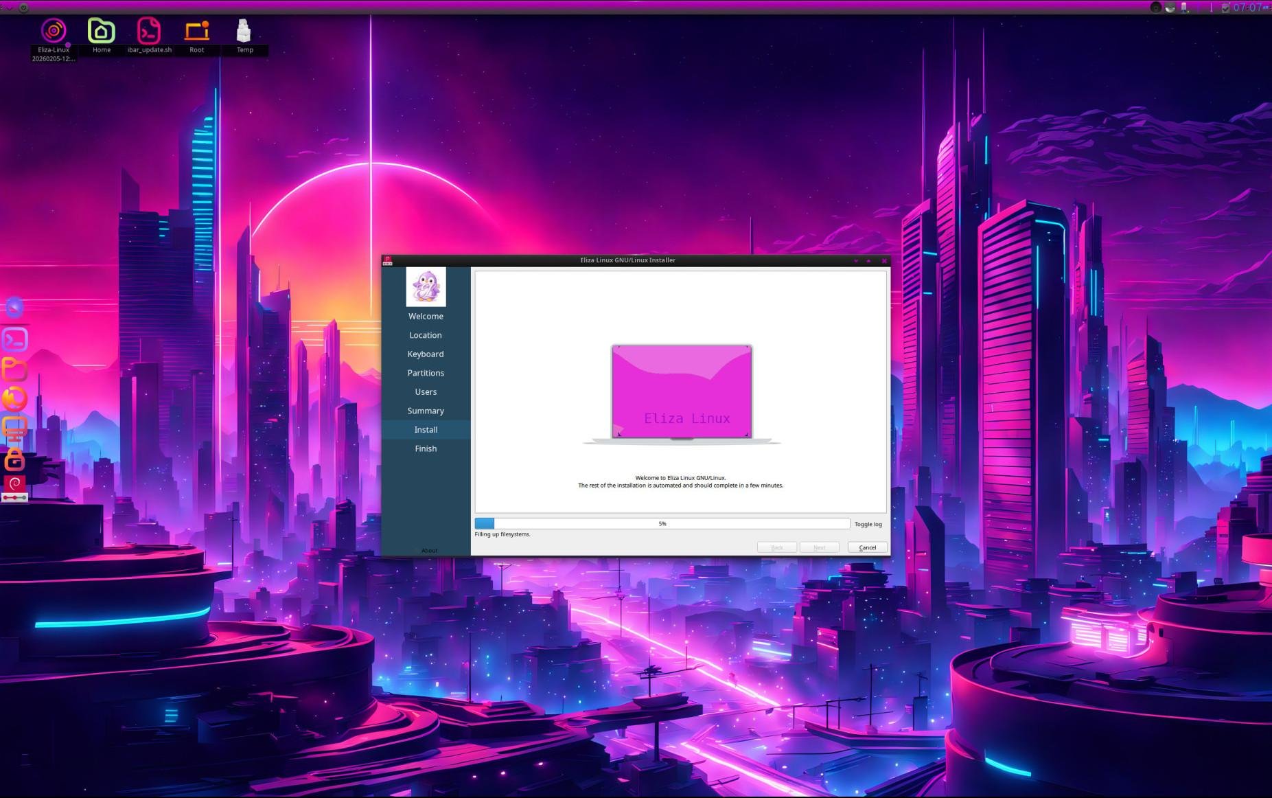 Eliza Linux is a personal, curated Linux system based on Debian Trixie, featuring the lightweight and elegant Enlightenment desktop. Designed for a soft aesthetic, it focuses on clarity, consistency, and a clutter-free experience. Eliza Linux prioritizes a minimal, carefully selected set of applications while remaining fully functional and customizable. Ideal for users who want a visually pleasing, curated environment with the stability of Debian at its core.