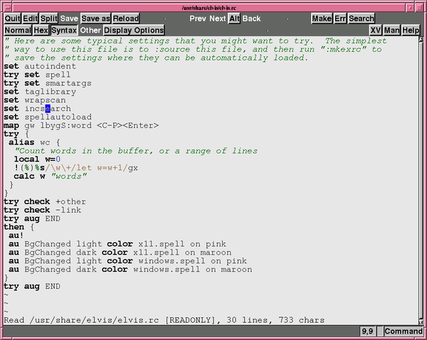 - elvis improves upon vi by fixing "early bsd" short-comings and adding features like html editing