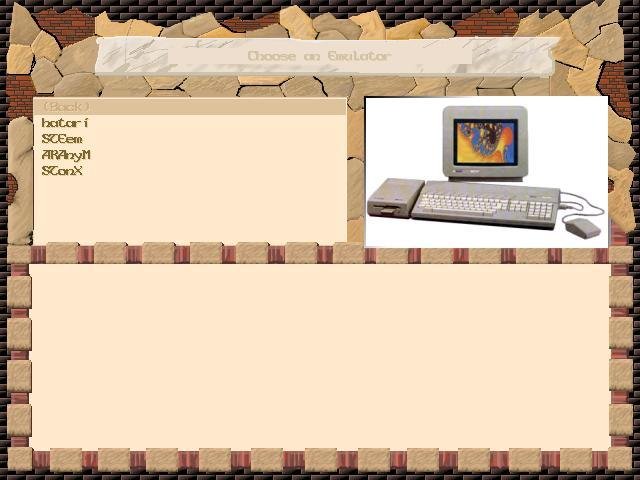 EMUFE (Extensible, Multi-emUlator Front End) This is a Front end system for any emulator. This front end runs in full-screen Kiosk tmode rather than a GUI. It was designed to run cleanly from CD-Roms (both LiveCDs and ordinary CDs)