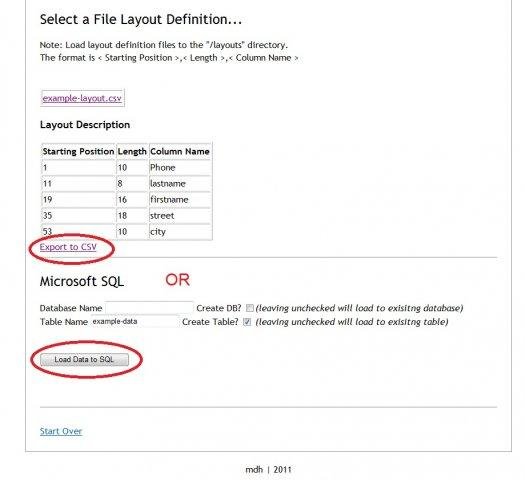 Easily convert flat file to csv or ms sql tables.Create multiple layout definition files making the tool very flexible to use on a day to day basis.Uses Database abstraction layer so it can be easily modified to work with mysql or oracle.