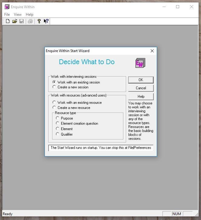 Enquire Within provides a clear structure for the process, leading the interviewer through the steps and disciplines required to set up a successful interview and then prompts the interviewer with carefully constructed questions to facilitate comparing and contrasting elements related to the purpose of the interview. Responses are progressively recorded and can, as required, be analysed for the purpose of constructing further compare and contract questions to gain more granularity.