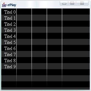 ePlay is an Audio-Player similar to iTunes. Due to the fact that it uses java, it is completely platform independent. It currently plays PCM (Wav...), MP3 and OGG Vorbis... The playlistcontrol will be easy to use but very efficent...