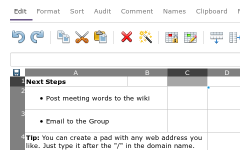EtherCalc is an open source, web-based spreadsheet that allows multiple users to collaborate and work remotely and in real time. Users can edit the same spreadsheet at the same time, with changes instantly reflected on screen. It accepts various mathematical formulae and other functions, and supports several default text formatting directives as well. It can be used for just about anything you’d need a desktop spreadsheet for-- accounting, inventory, scheduling, list management and so much more.