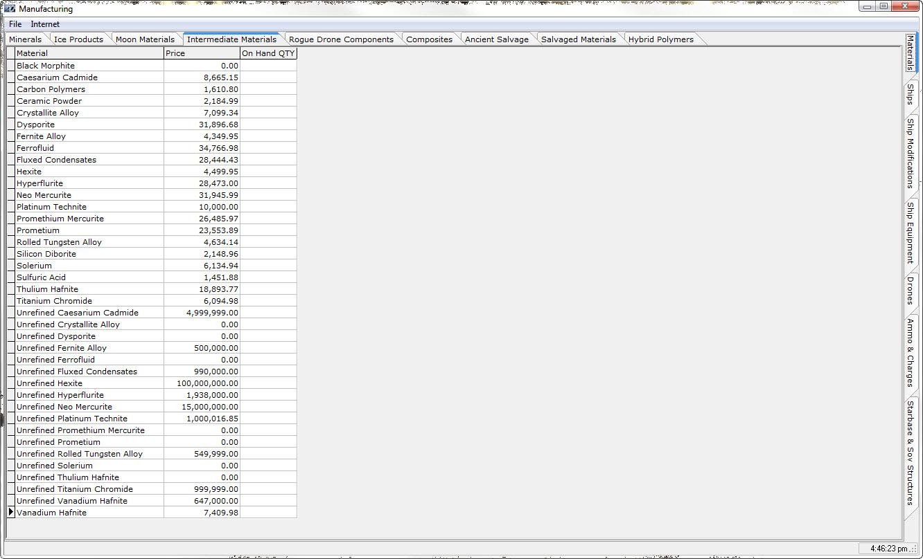 This program makes it so that you no longer need your spreadsheets to calculate how much trit you need for an item. It lists all items that have a blueprint in the game.