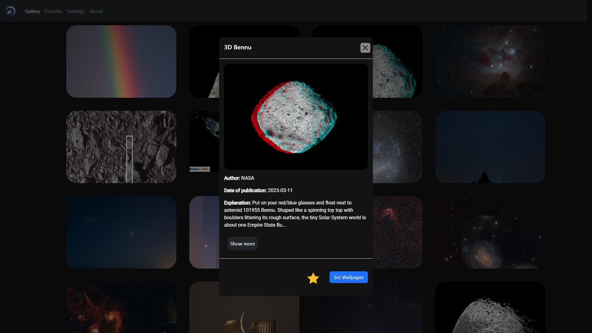 The program takes a picture from the NASA website every day and sets it as a background for your workspace.