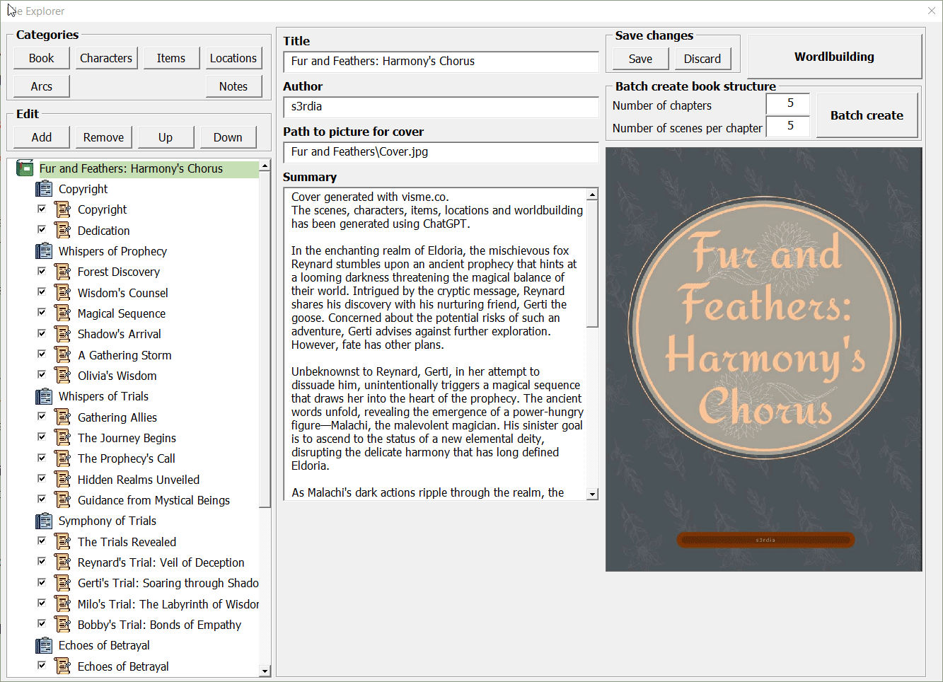 - Organize your book, chapters, scenes, drafts, characters, items, locations, arcs, eras, events, notes and your world.