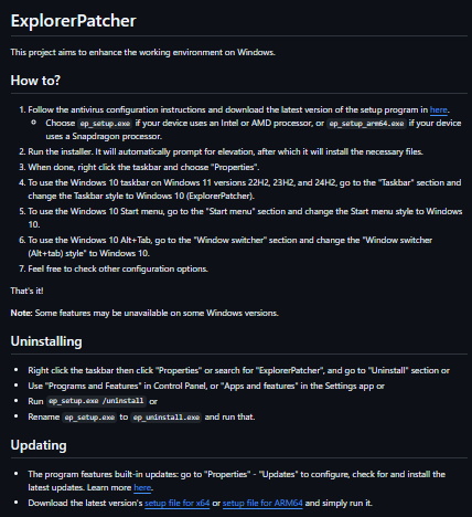 ExplorerPatcher is a lightweight Windows utility that brings back classic Windows 10 UI elements in Windows 11, including taskbar styles, Start menu layouts, and Alt+Tab behavior. It works via injecting patches into Explorer, configurable through a Properties panel post-install.