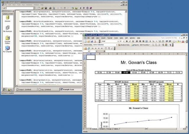 exportToXL is a SAS macro for exporting data from PC SAS onto custom-formatted Excel spreadsheets using Dynamic Data Exchange. It works on all versions of PC SAS, Excel and Windows -- but notably not on any version of SAS running off of a server.